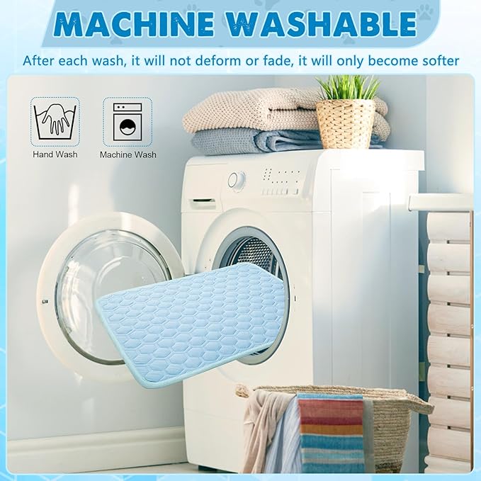 - 【Portable & Versatile Use】: This dog cooling mat is lightweight, foldable, and great for indoor or outdoor use. Whether place the pet cooling pad for dogs or cats on the floor, sofa, crate, kennel, or car seat, your pet will enjoy instant relief from the heat. The pet cooling mat for cats is machine washable in cold water and air dry for easy maintenance. The pet cooling mat for dogs is a must-have this summer!