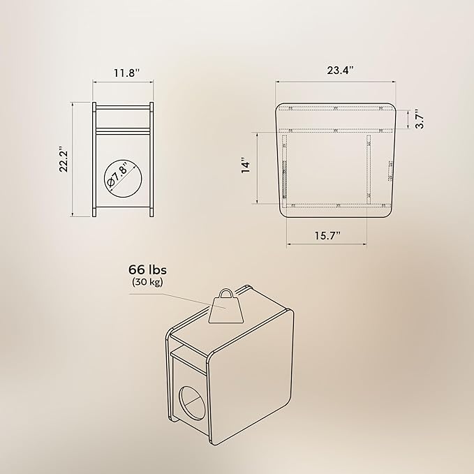 - GIVE YOUR CAT A COZY HIDEAWAY with this modern wooden cat hideout that doubles as a stylish end table. Featuring a round entry opening (⌀ 7’’) and a spacious inner compartment (10.55" W x 14" H x 15.7" D), it provides a cat cave for your favourite one to rest and relax. Compact yet functional, this cat end table blends seamlessly into your living room, bedroom, or office. PILLOW NOT INCLUDED.