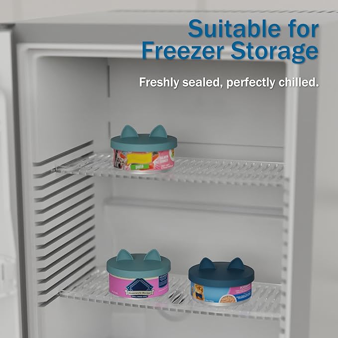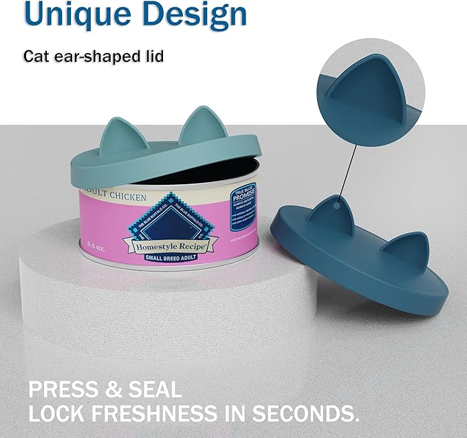 OHMO - 2 Pack Cat Food Can Lids, Small (3 oz) Silicone Can Covers for Pet Food Cans 2.5 oz Cat Food Cans, Dark Blue