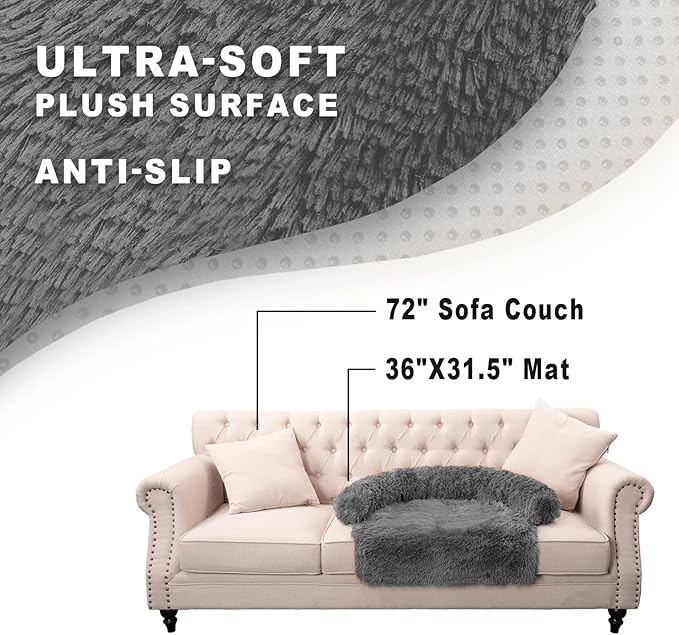 Calming Dogs/Cats Bed Mats, Dog Pad Washable Removable Couch Cover, Plush Long Fur Mat for Pets, Waterproof Lining, Perfect for Small, Medium and Large Dogs and Cats (Dark Gray, 36"x31")