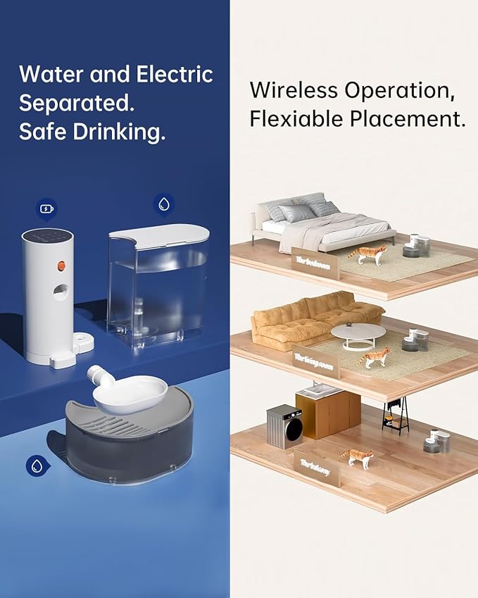 - 【Large Capacity&180 Days of Battery Life】With a 3.5L/118oz capacity,you don't have to refill it frequently. Perfect for cats,multi cats or small dogs,keep pets well-hydrated when you go out.Powered by 2000mAh built-in rechargeable battery,the cat water fountain filterless provides up to 180 days of battery life.Your pets can enjoy water anywhere they want without worrying about power outlets or cords,offering great flexibility.The filterless cat water fountain is silent,it doesn't disturb the household or scare your pet.