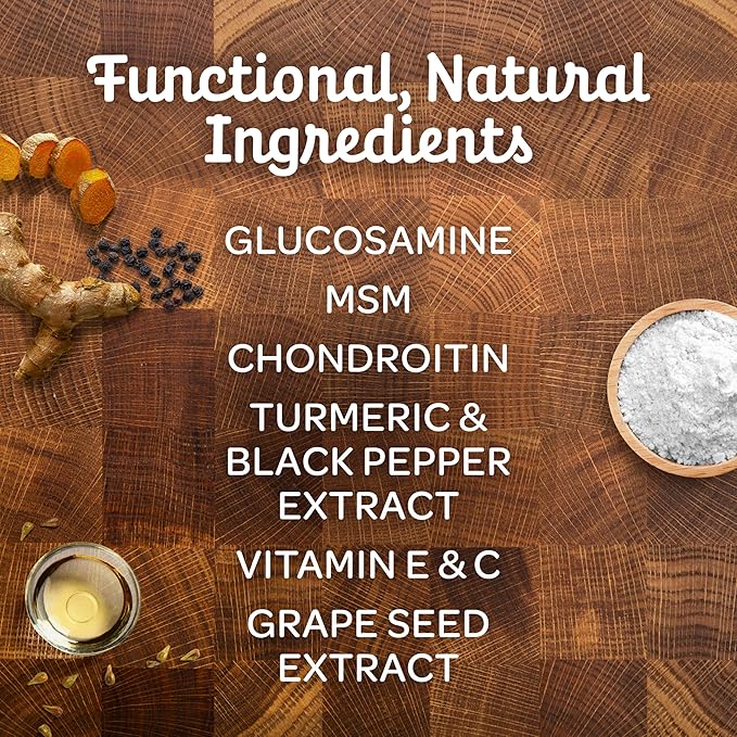 - COMPLETE JOINT SUPPORT FORMULA – Each soft chew delivers Glucosamine, Chondroitin, MSM, and Turmeric to support healthy cartilage, improve flexibility, and ease joint stiffness in dogs of all ages.
