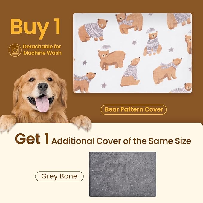 Bearhug Dog Heating Pad, Pet Heating Pad 35"×24"[Two Replaceable Cover] Adjustable Temperature Heated Cat Bed with Steel-Wrapped Cord, Waterproof and Chew-Resistant for Dogs Cats Large Animals