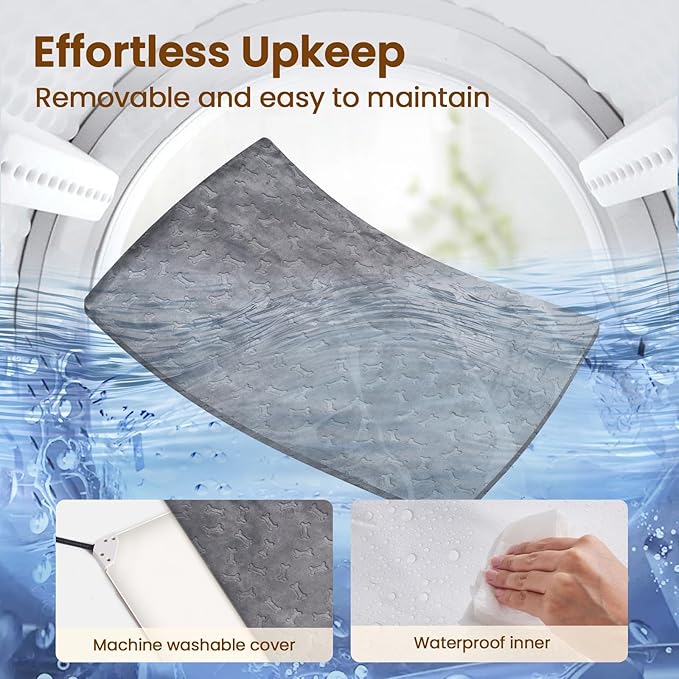 - 【Durable and Safe Design】Crafted with IP68 waterproof material and a chew-proof cable, our pet heating pad is built to last. It ensures durability and persistence while keeping your beloved pet safe. No more worrying about accidental spills or curious chews ruining your heating pad.