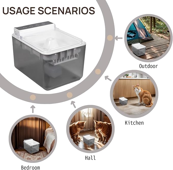 - Flexible Placement: The wireless cat water fountain runs on battery power, allowing you to set it up in any spot your cat favors, without being limited by a power cord. This promotes hydration while maintaining flexibility in location.