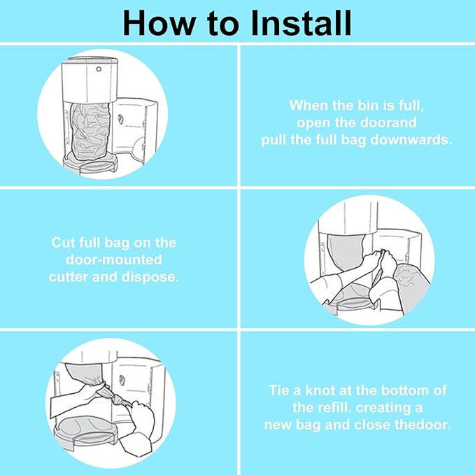 - 𝗘𝗮𝘀𝘆 𝘁𝗼 𝗶𝗻𝘀𝘁𝗮𝗹𝗹: Just pull out a layer of plastic bag out, through the center of the cartridge, compare the appropriate location of the barrel to tie a knot underneath, then open the lid to put the cartridge on top and you can use it. Package include 12 count.