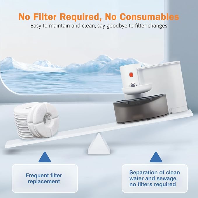 - Detachable Design for Easy Cleaning: This water fountains for cats indoor adopts a removable design, making it simpler to clean the water tank or waste tank. The cat drinking fountain operates with minimal noise. Its timed water flow ensures that your pet can drink peacefully at any time of day or night. Ideal for every pet-owning family, providing pets with a safe and fresh water source.