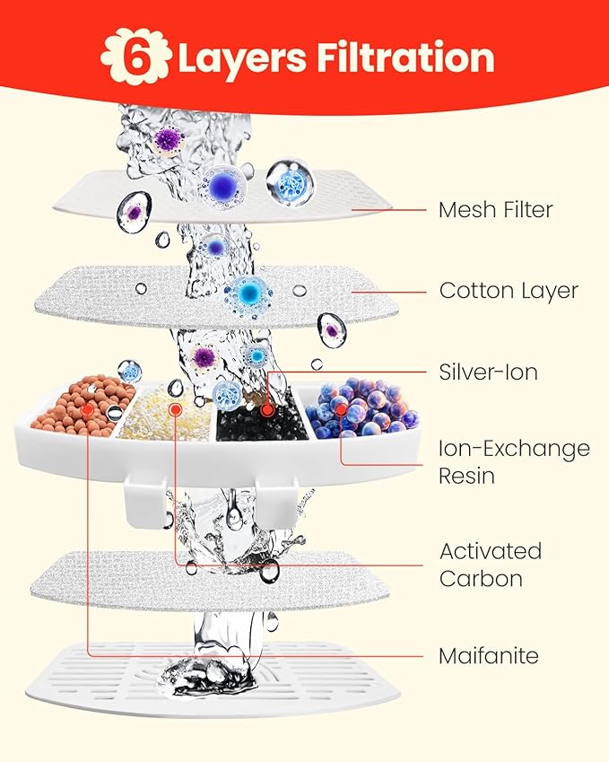 - Six-Layer Precision Filtration: Our filters for cat water fountain features a six-layer filtration system. The cotton layer effectively traps even the tiniest impurities, providing your pet with the cleanest water possible.