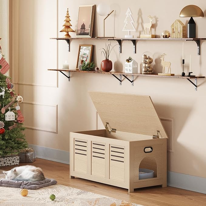 - 【Small Body, Great Capacity】Spacious cat litter furniture with large entrance fits most of common litter box. Free movement space allows your pet to come and go as she/he pleases. Also protect the territory of cat from being violated by dog, which greatly enhances the happiness of the cat. Dimension: 39.4"L x 19.7"W x 19.7"H