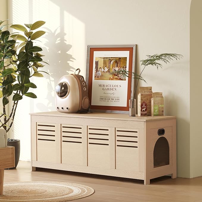 - 【Good Ventilation Is Essential】More than a cat washroom bench, a leisure area and a resting zone for your kitty as well. Louvered doors create low-light environment for sensitive cats to feel safe and secure, allowing cats to enjoy fresh air and soft light while resting and playing