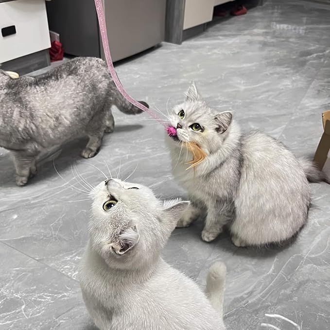 - INTERACTIVE CAT TOYS - Swing cat wand, bell rings, kitten will love to bat it around, pounce on it, and rub them for hours on end. Perfect stick cat toys for Indoor