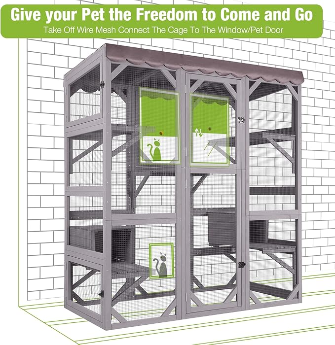 - 【Sturdy & Safety】: The upgraded version of cat enclosure adds the surrounding reinforcement wooden strip structure to the product to make it more robust and durable. A waterproof roof is perfect for outdoor and indoor use