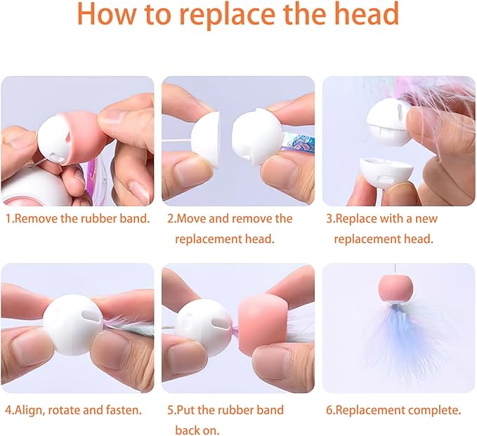 - 【Replaceable Head Design】 Includes diverse replaceable toy heads, plus 2 bonus feather replacement heads. Offers rich play modes to keep cats engaged.