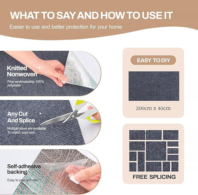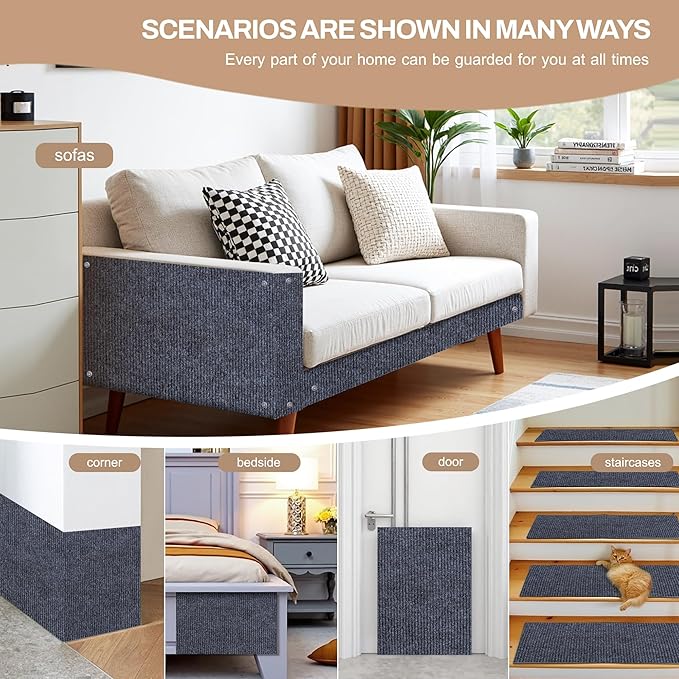- 【Multi-Purpose】This mat can not only be used as a carpet replacement but also suitable for a variety of cat-friendly spaces, including cat tree shelves, walls, wall-mounted furniture steps and sofas, providing a multifunctional solution for cat owners. It enhances the cat-friendly environment in your home while maintaining a clean, scratch-free living space.