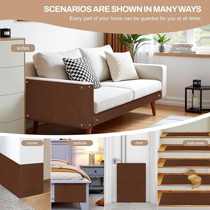 - 【Multi-Purpose】This mat can not only be used as a carpet replacement but also suitable for a variety of cat-friendly spaces, including cat tree shelves, walls, wall-mounted furniture steps and sofas, providing a multifunctional solution for cat owners. It enhances the cat-friendly environment in your home while maintaining a clean, scratch-free living space.