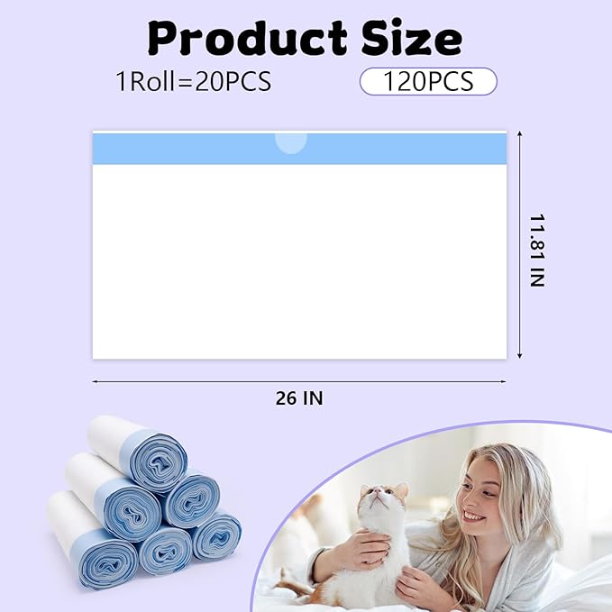 - Value Pack: Our litter box liners come in carefully packaged value packs designed to provide you with reliable cat care supplies. Each pack of cat litter box liners contains multiple rolls, ensuring you have enough stock to keep your cat's litter box clean without constant refilling. This affordable option not only saves you money but also simplifies your cleaning routine so you can focus more on spending quality time with your furry friend. Enjoy long-lasting convenience and peace of mind