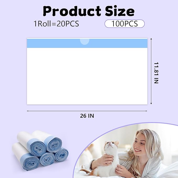 100 Count 26" x 11.8" Cat Litter Box Liners for Fsitego and Fumoi Self Cleaning Litter Box, Extra Thick Heavy Duty Cat Litter Bags Replacement, 3-4 Gallons of Capacity