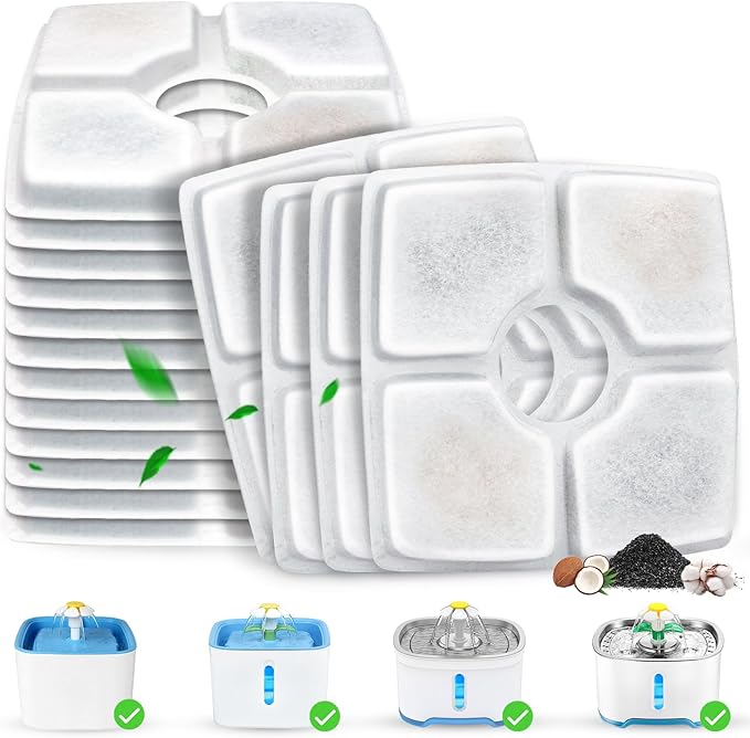 - 【Regularly Replacement】Recommend replacing the filter every 2-4 weeks, depending on the number of cats in your home, and meanwhile clean the fountain and the pump to extend service life. The 16 pack combination is for you can replace them regularly and enough for 8-10 months usage.