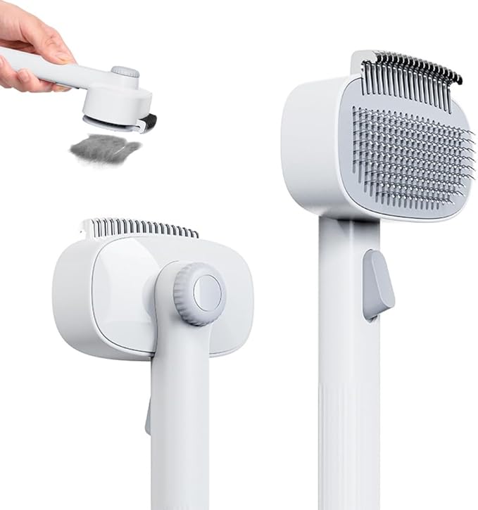 - 🌈【Rounded Head Design】Smooth edge design allows you to brush your pet's hair without hurting it, the cat hair brush comes with a release button, clicking the self-cleaning button retracts the bristles and wipes away hair from your pet's accessories