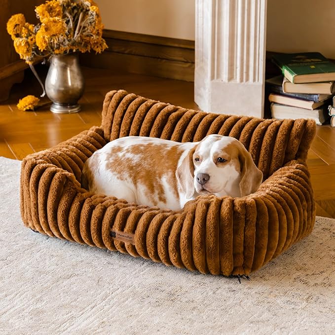 MEWOOFUN Dog Couch Bed, Fluffy Small Dog Bed with Removable Washable Cover, Supportive Cat Couch for Cats & Dogs up to 25 lbs (Brown, 30x21x12)