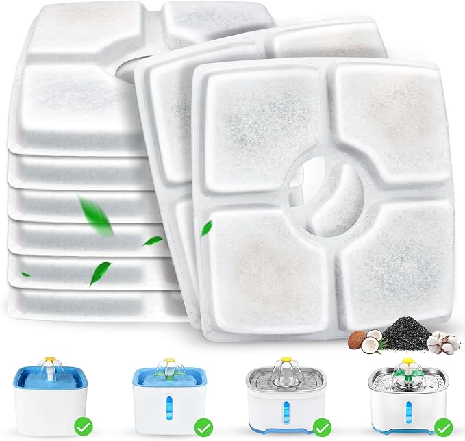 - 【8 Pack Filters Set】Beyolike premium cat fountain filters set includes 8 pcs replacement filters, triple filtration system square carbon filters for cat water fountain can effectively filters out food debris and pet hair, ensures fresh and clean drinking water for cat dog, keep your pet healthy.