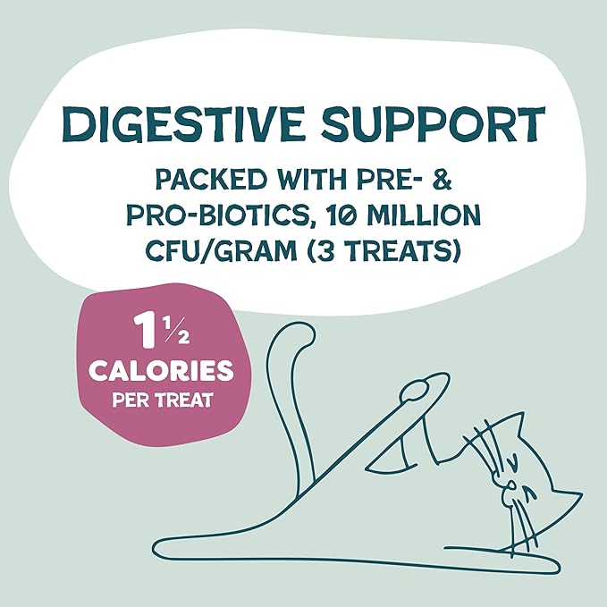 - Cat Treats That Support Digestive Health: Whether you have a celeb or average kitty they will love our blend of savory chicken with a hint of tart cranberries. These crunchy, star-shaped, bite-sized treats are packed with both pre & probiotics, which help support digestion! Includes one 12 oz bag.
