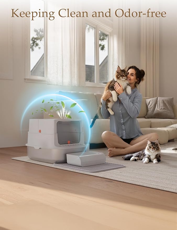 - Complete Stainless Steel Kit, Easy to Clean, Built to Last: Made from rust-proof, scratch-resistant stainless steel and durable ABS, this litter box controls odor and wipes clean in seconds; Includes: stainless tray, 3-piece lid, dual-hole scoop, litter filter pedal, charcoal bags & anti-slip mat; We're here if you need support—24h response guaranteed.