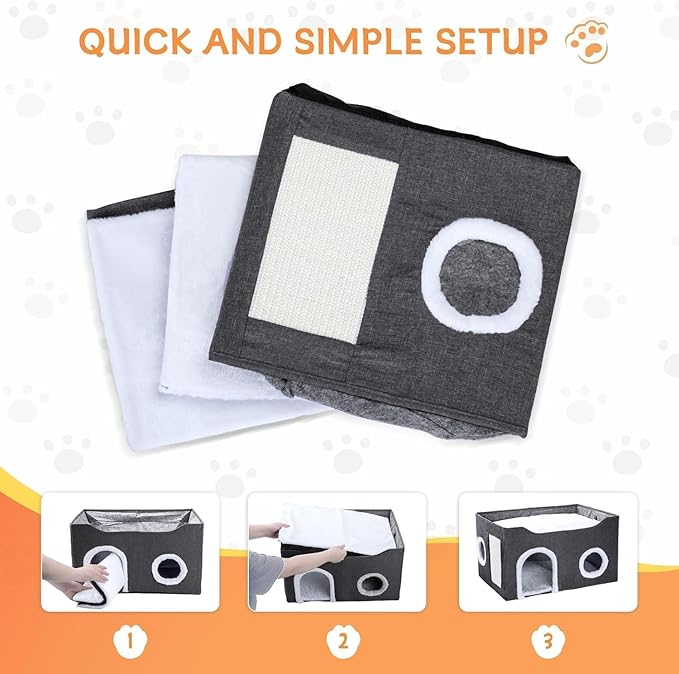 - Effortless Assembly & Storage: Say goodbye to tools and hardware! This cat shelter is a breeze to set up without any screws or extra parts. Plus, it's foldable and compact, making it a space-saver under couches, beds, or in closets. Perfect