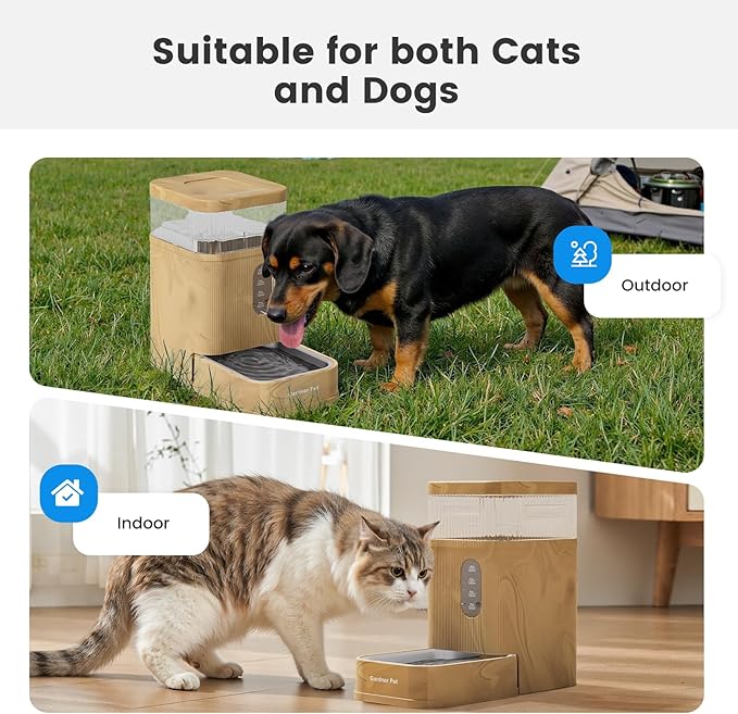 - Silent, Spill-Proof Design - Gravity water feeder is Motor-free operation ensures silent water dispensing. Anti-tip square base stays steady during play, while advanced filtration keeps water fresh.