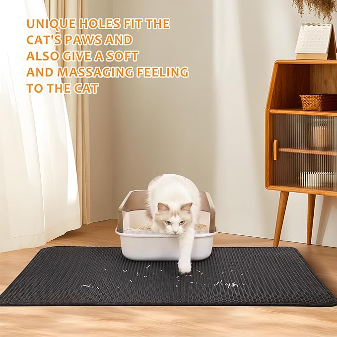 - 【Double-layer Honeycomb Structure】Unique double-layer honeycomb groove design closely fits the cat's paw shape, effectively intercepts and collects scattered litter, reduces floor pollution, and makes cleaning easier and less stressful.