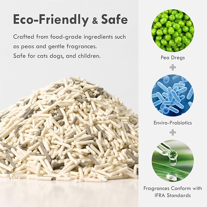 - NATURAL FOOD-GRADE INGREDIENTS: Crafted from premium pea fiber and starch, our litter is an embodiment of our commitment to your pet's well-being and the environment. Trust in a cat litter made entirely from natural ingredients.