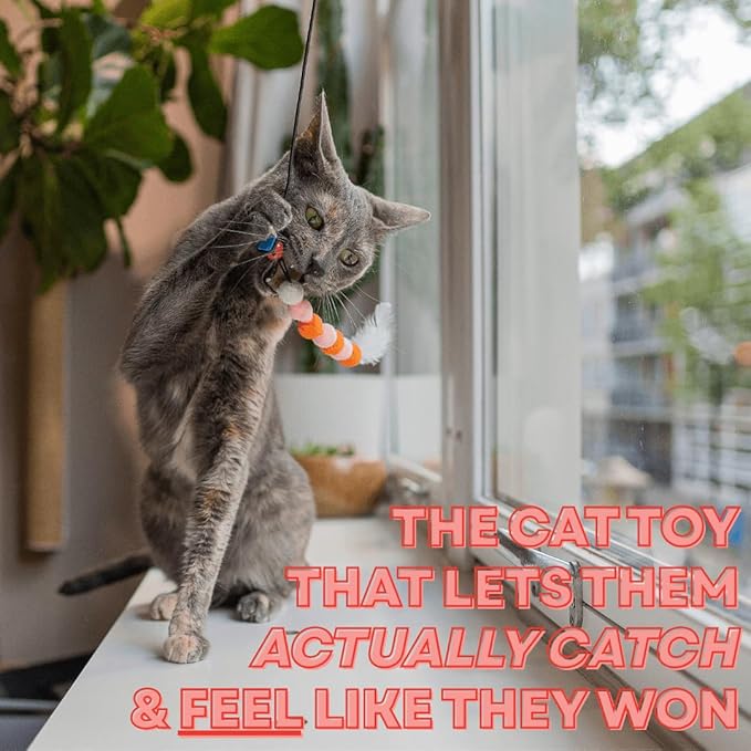 - ✅ MAGNETIC CATCH & RELEASE – Unique magnetic system lets cats "catch" the toy during play. Magnet also holds lure for tangle-free storage.
