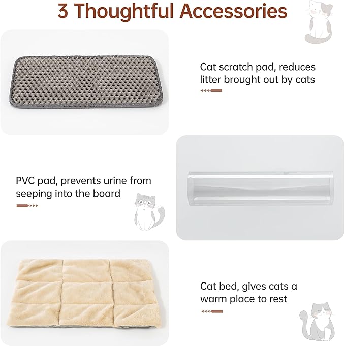 - 【Built-in Scratching Pad, Easy Cleaning】: The integrated sisal scratching pad at the entrance satisfies your pet's natural scratching instinct while helping to remove litter from its paws. The curved entrance reduces litter residue by 60% compared to open litter boxes, making scooping and cleaning easier and keeping your home cleaner during maintenance.