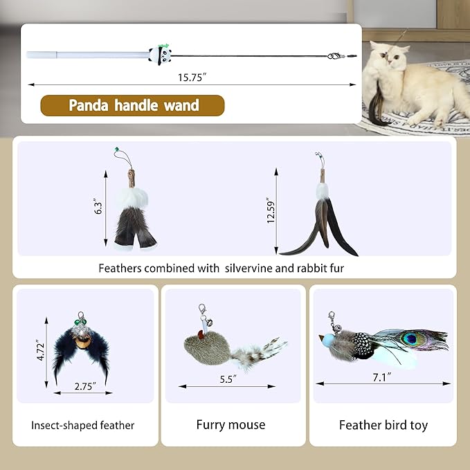 - You will get 5PCS different cat wand toy attachments and 1 fishing line.