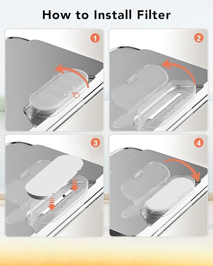 - Note: Please soak and clean the new filter in clean water for 5 minutes before using it to prevent the activated carbon dust from shedding into the water