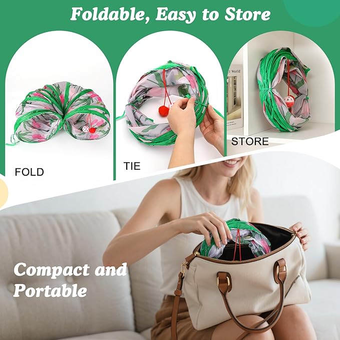 - Interesting Ball and Bell: The cat tunnel toys come with plush ball and bell that you can hang from the side opening, shaking and rattling to make a clear ringing sound that will attract your cat's attention and arouse curiosity, keeping your kitty entertained for long hours!