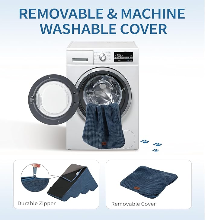 - Easy to Clean & Maintain: The removable fleece cover is machine washable for easy cleaning—just remove the foam core and toss the cover in the wash. Note: After unpacking, allow the foam to fully expand for 24-48 hours to ensure maximum comfort and stability. For long-lasting use, wipe the foam core clean. This simple care keeps your pet's stairs fresh and comfy for your furry friend!