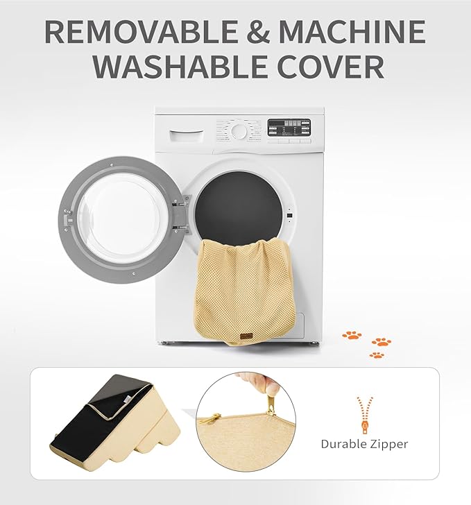 - Easy to Clean & Maintain: The removable fleece cover is machine washable for easy cleaning—just remove the foam core and toss the cover in the wash. Note: After unpacking, allow the foam to fully expand for 24-48 hours to ensure maximum comfort and stability. For long-lasting use, wipe the foam core clean. This simple care keeps your pet's stairs fresh and comfy for your furry friend!
