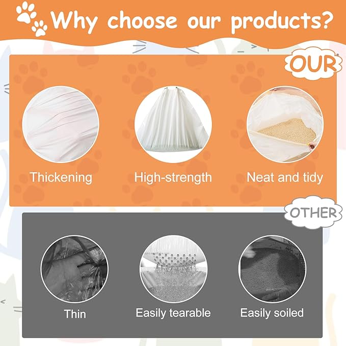 - Multipurpose for Pet & Home Use: These multi-use drawstring bags aren’t just for cat litter — they work great as kitchen garbage bags, pet waste bags, or diaper pail liners, supporting a cleaner, more organized home.