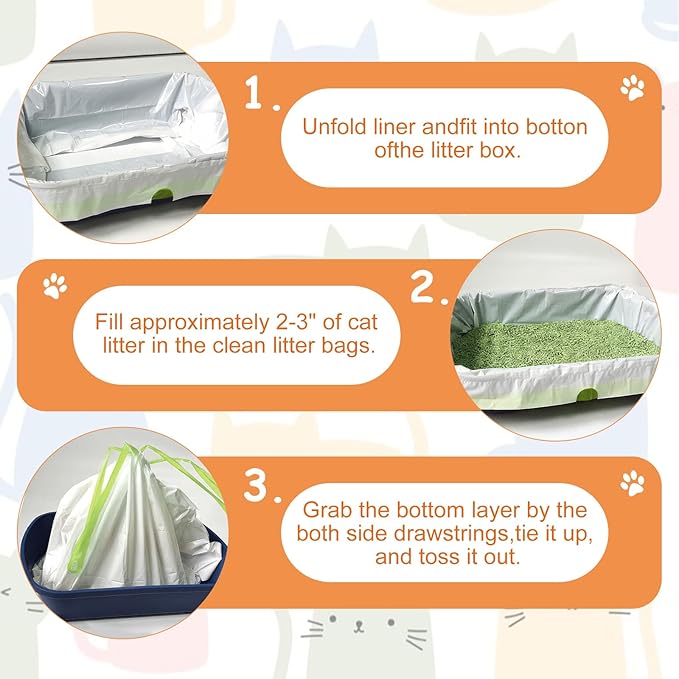 - Leak-Proof & Floor-Safe Design: Engineered with sealed corners and durable seams, our litter liners prevent leaks and spills. Your litter tray stays clean and dry while protecting your floors from messy accidents.