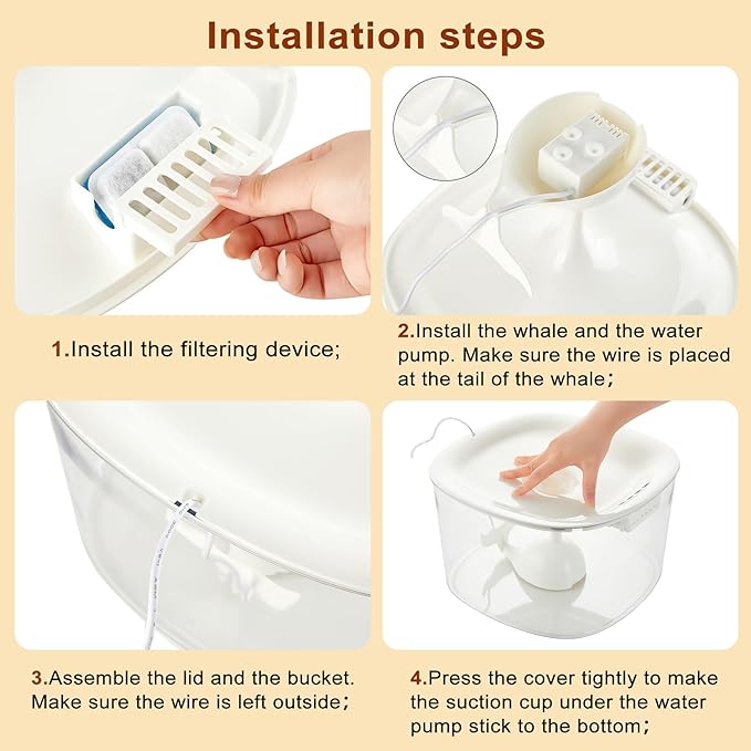 - Transparent Visible Water Level Window:The clear, transparent tank lets you easily check the water level at a glance, eliminating the need to constantly open the lid. Plus, the charming whale-shaped pump cover not only hides the pump but also adds a cute touch to your home decor.