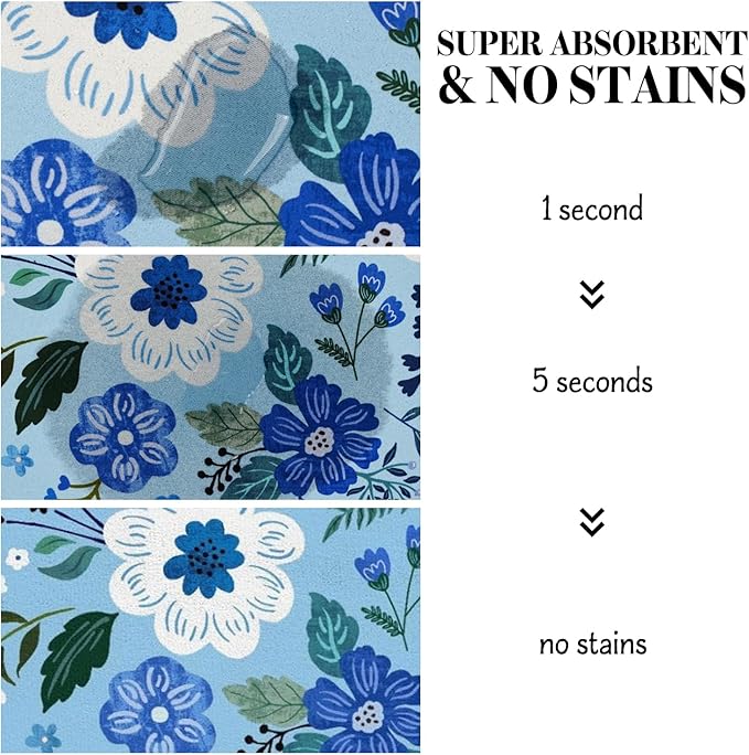 - Super Absorption: The dog mat for water bowl can absorb spilled water without leaving traces and dry quick, avoid wetting pet paws even for messy drinkers. And it does not attract pet hair like traditional silicone dog bowl mat.