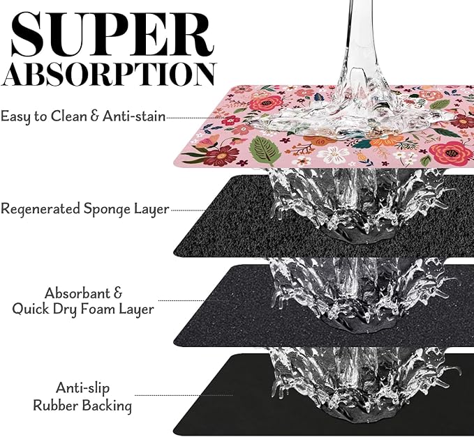 - Super Absorption: The dog mat for water bowl can absorb spilled water without leaving traces and dry quick, avoid wetting pet paws even for messy drinkers. And it does not attract pet hair like traditional silicone dog bowl mat.