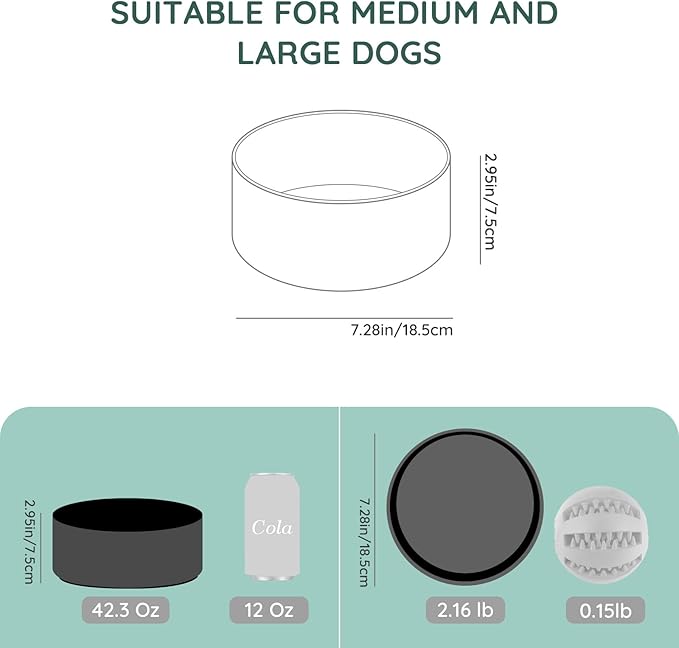 - Capacity AND Size: SPUNKYJUNKY dog bowl is available in 5.2 cups(42 Fluid Ounces) capacity, perfect for different breeds of small and medium-sized dogs