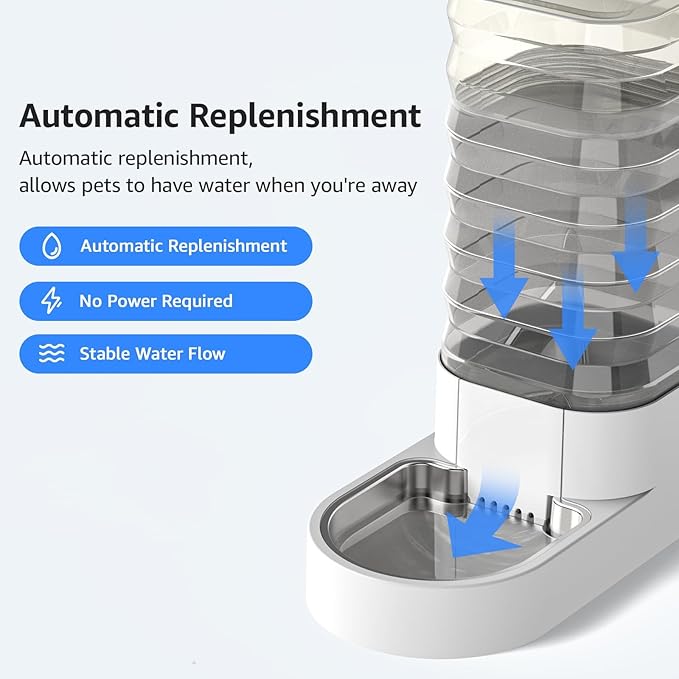 - 【Fresh - Continuous Flowing Water】With a self-gravity feeding design, the automatic dog waterer delivers a continuous flow of fresh water, eliminating the risk of your pet running out of water when you’re unable to refill their bowl.
