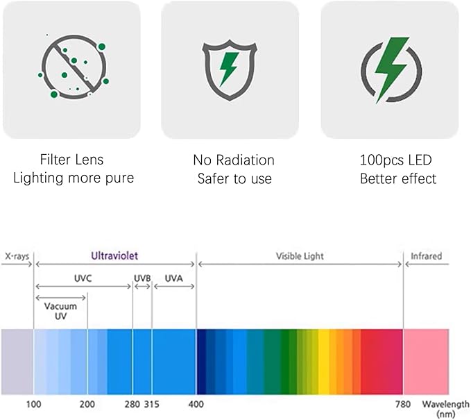 - [Upgraded Brightness and Wider Coverage] This black light flashlight features a high-output design with 100 UV LEDs, providing a brighter and more focused light beam. With enhanced brightness, it covers a larger area without diminishing light intensity, making it ideal for scanning your home, yard, or office. Whether you're detecting pet urine or checking for fluorescent substances, our UV light flashlight provides up to 60% more brightness than competing models
