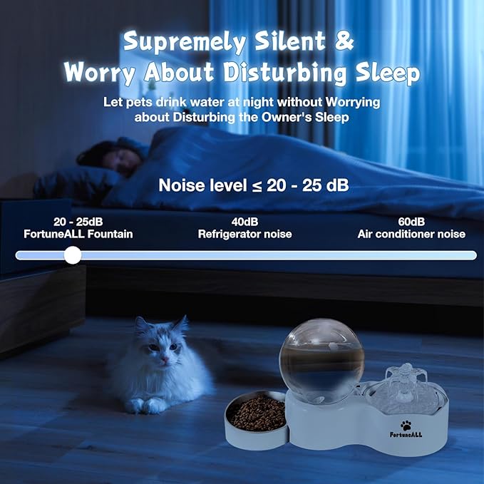- 【Ultra Quiet Design:】- Equipped with anti-dry-boiling water pump, it will automatically cut off the power and the red light will flash when there is no water. Sleep soundly even when the cat drinking fountain is in your bedroom. The advanced water flow structure filters out noise so the entire fountain clocks in at a barely audible 20-25 dB—quieter than a whisper