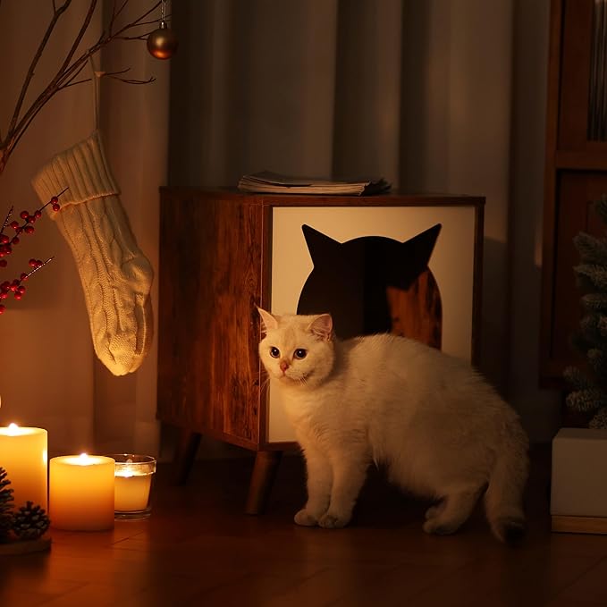 - 【Sturdy Wooden Cat House】MDF (medium density fiberboard) square base with solid wood stands, stable and easy to fit seamlessly into the living room, bedroom, study, or any room in your home.