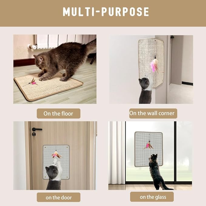 - LAYERED CAT SCRATCH PAD DESIGN: Top netted sisal protects paws, middle 80-grit emery naturally files nails, and reinforced backing boosts stability. This cat scratcher that files nails prevents abrasion while maximizing scratching satisfaction