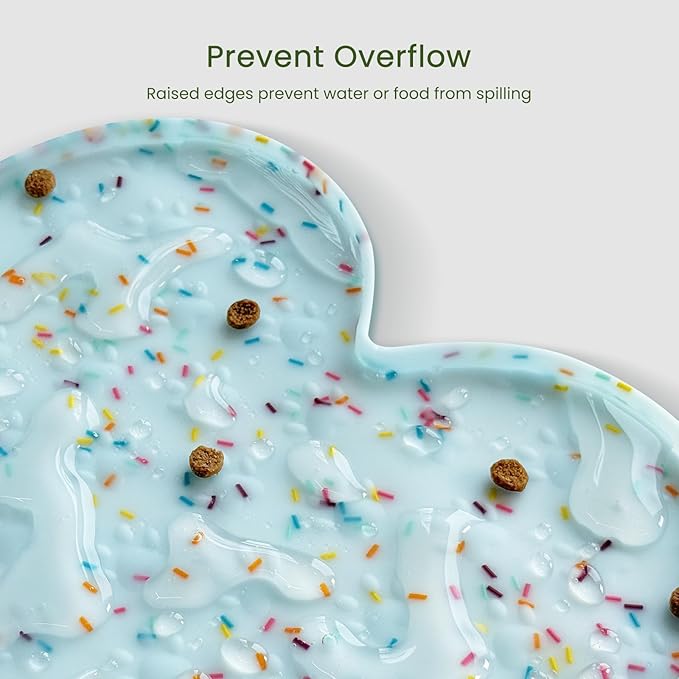 - Raised Edge - The high edge of this feeder mat keeps food and water within the tray and prevents spillage onto a clean floor. Keep your living space tidy and clean, say goodbye to messy floors, you just need to clean the dog bowl mat regularly.